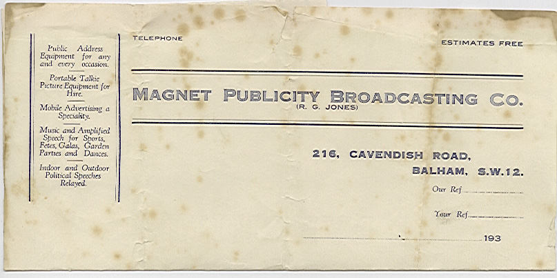 Seeing an opportunity, RG invested in his own mobile sound van—offering amplified advertising services to companies looking to reach the public in a bold new way. Magnet Publicity Broadcasting was born.