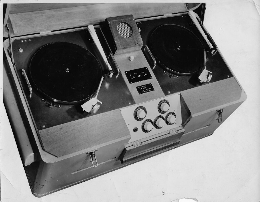 Live dance bands were expensive, so RG developed the “Crooner Set”—an early predecessor to the modern DJ setup. This portable sound system included:
