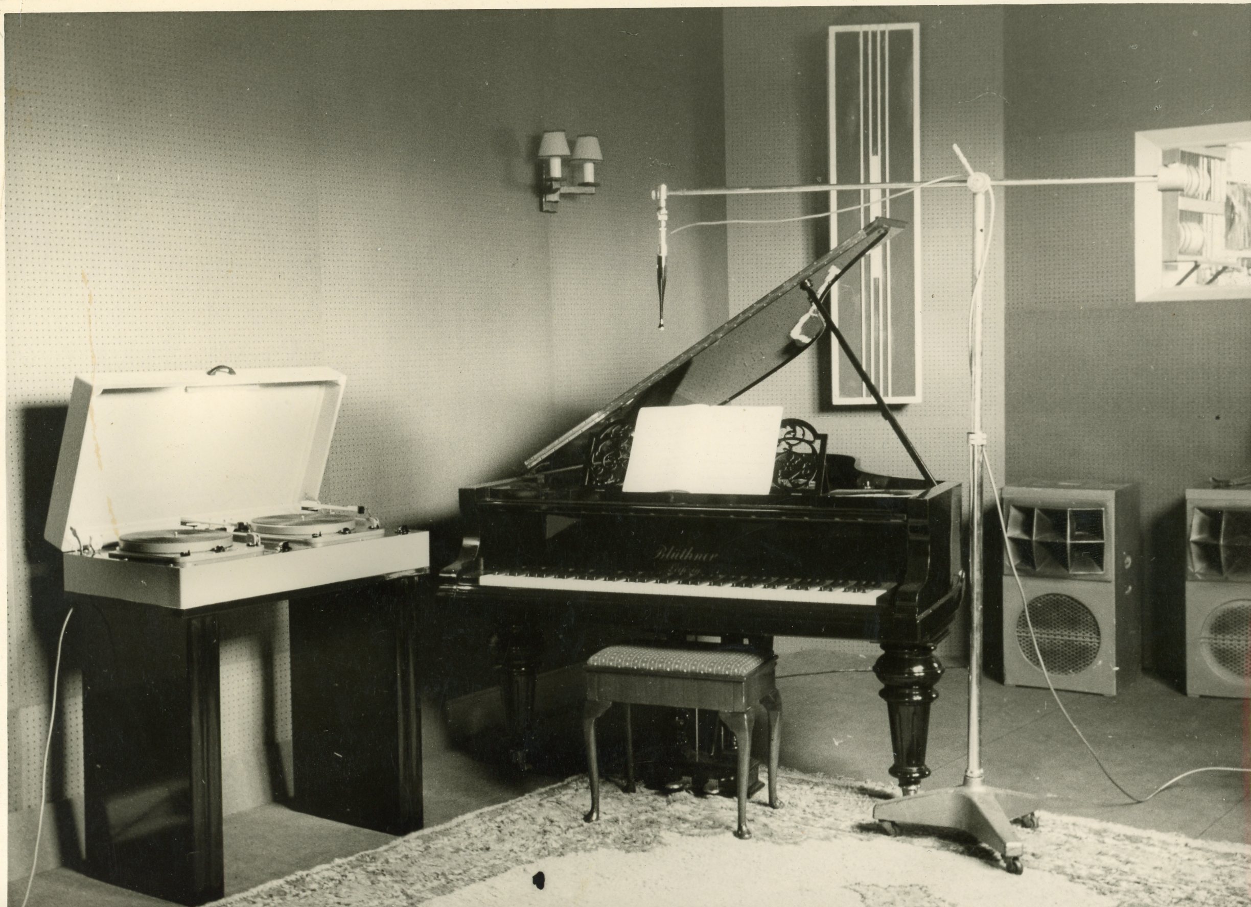 To enhance realism, all equipment was hidden behind a curtain, except for the live microphone, which blended the recorded music with natural room acoustics—a method that delivered exceptional sound clarity.