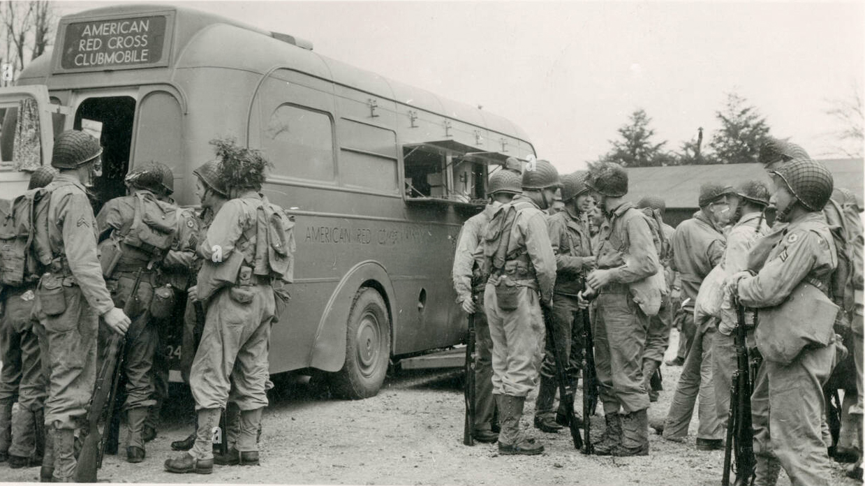 He was also contracted to refit Green Line coaches, which were repurposed for the American Red Cross and renamed “Clubmobiles.” These vehicles were painted battleship grey and transformed into mobile morale boosters, equipped with: